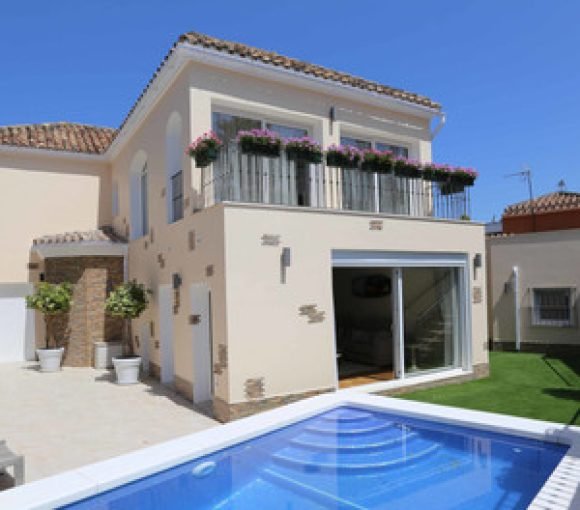 Spectacular luxury villa in an exclusive area of Marbella. It has two floors, on the ground floor is the hall, 3 bedrooms, 3 bathrooms, kitchen, dining room and a distributor and the staircase that communicates with the upper part of the villa which is composed of living room, dining room, kitchen and solarium . It has a private garage and storage room and a beautiful pool with garden in which to enjoy it all year round.
