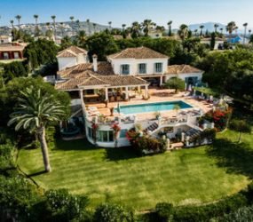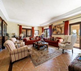 Substantial family villa in Sotogrande Alto offering golf views over the San Roque Golf Course towards the Mediterranean Sea.