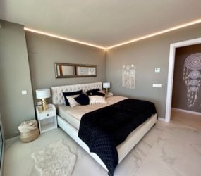 Freshly completed in September 2021, this impeccably designed apartment features the largest terrace in the complex, complete with a sun-drenched solarium boasting a built-in BBQ, upgraded Jacuzzi, and outdoor shower—a haven for relaxation and entertainment. The main level exudes elegance, with a spacious master bedroom offering a sleek en-suite bathroom, fitted wardrobe, and seamless access to the terrace, alongside a second double bedroom and another stylish bathroom.