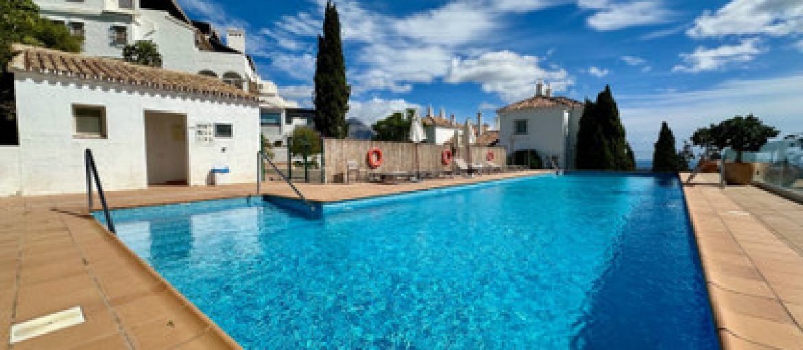 This apartment is located above San Pedro de Alcántara with fantastic sea views. The apartment has an open kitchen, living-dining room, 2 bedrooms, 2 bathrooms and a room that is currently used as an office. The urbanization has a pool area. From La Heredia you can reach the center of San Pedro or the beach in just a few minutes.