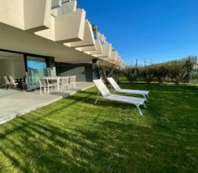This is a fantastic opportunity to acquire a key ready Garden Apartment in the renowned Oasis 325, in Estepona. Featuring a bright and open living space enveloped with light which immediately welcomes you upon entering the apartment. There is a semi-covered terrace of 32m2 and a private grass garden of 67m2. The kitchen is modern and fully equipped, with a separate laundry/storage room and two spacious guest bedrooms with built-in wardrobes. The master bedroom has an en-suite bathroom and opens directly onto the garden.