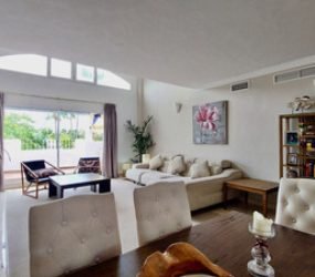 Discover this impressive duplex penthouse in San Pedro de Alcántara with an excellent location a few steps from the beach and the prestigious "Laude International College". Located in a safe and residential area, within a high-class private community with tropical gardens and two swimming pools.