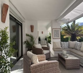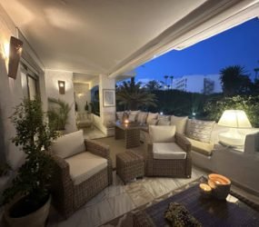 Fantastic elevated ground floor in Puerto Banus, full of light with a large terrace that overlooks the gardens, integrated from the inside into nature. 2 large bedrooms with 2 bathrooms. Fully equipped renovated kitchen. A nice and spacious living room. Air conditioning hot / cold. 1 parking space very comfortable. Gardens with fountains, Japanese style wooden bridges and community pool. 3 minutes walk to the beach, shopping centers, restaurants, and hospital.