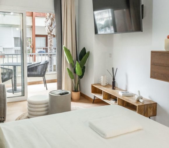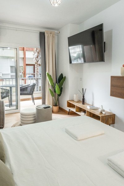 This modern studio is located in the sought-after area of Playa de la Fontanilla in Marbella, Málaga, within the Fuente de Apolo community. This property stands out for its contemporary design and privileged location, just steps away from the sea and surrounded by all the necessary amenities to enjoy a coastal lifestyle.