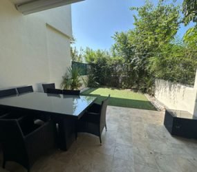 This turnkey ready & fully furnished, townhouse with spacios interiours offers 3 generously-sized bedrooms and 2 contemporary bathrooms, plus a convenient guest toilet. Large windows fill the living area with natural light. The fully fitted kitchen flows seamlessly into the lounge. Enjoy the private garden, and covered terrace with suncreen for al fresco meals. The rooftop solarium offers great potential.